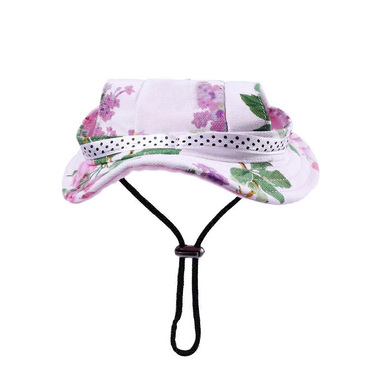Pet Dog Canvas Hat Sun-shading with Ear Holes for Small Dogs - Size M (Floral Print)