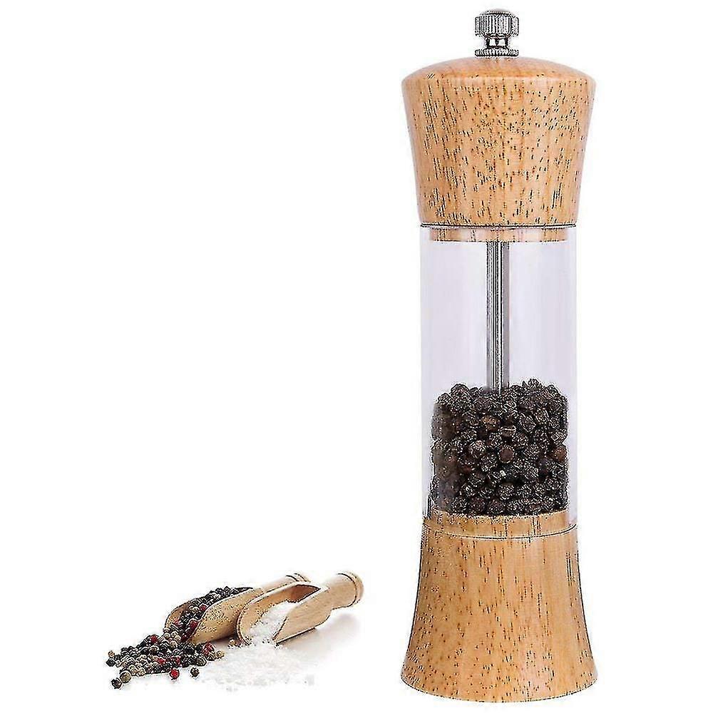 1.Moden And Easily Refillable Design:Smart Design With Visible Acrylic Body, The Clear Acrylic Shaker Body Highlights The Level Of Your Spice And Is Easy To Refill, Simply Pull Up On The Pepper Grinder Top And Refill With Your Choice Of Peppercorns, And Easily Fill The Pepper Grinder By Removing The Top. .2.Premium Quality:Nice Handmade Salt And Pepper Shakers -Genuine Wood + Acrylic See Through Design. Salt And Pepper Grinder By Ceramic Burr - Excellent Material For Reliability And Long-Time Use. Never Need Worry Rusty Such As Metal Grinder.3.Ceramic Grinder Core With Adjustable Coarseness : Both Gears That Grind The Spices Are Made Of Ceramic. With The Efficient Knob On Top, You Can Easily Adjust The Grind Grade In Them From Coarse To Fine By Twisting It. It Will Be Fine When Tightening The Knob, It Will Be Rough When Unscrew.4.Perfect Kitchen Gadgets: Fully Separable Designed, Use Them To Grind Small And Crisp Grains, Such As Chilli, Pepper, Sea Salt And Sesame Seeds And So On. It Easily Locks The Freshness And Odor Of The Pepper And Keep At Afresh For Anytime Use.5.How To Use: Step 1: Turn On The Silver Screw, Take Away The Cover Of The Top.Step 2: Put The Chilli, Pepper, Sea Salt, Sesame Seeds Or Other Crisp Spice In The Body Of Mill.Step 3: Replace The Cover And Twist Back The Screw, Than Rotating The Top Cover, For Coarse Or Fine ,ItS Your Choice, The Power Will Be Out From The Bottom Of The Mill. Tighten The Silver Knob On Top For Finer, Loosen The Silver Knob On Top For Coarser.