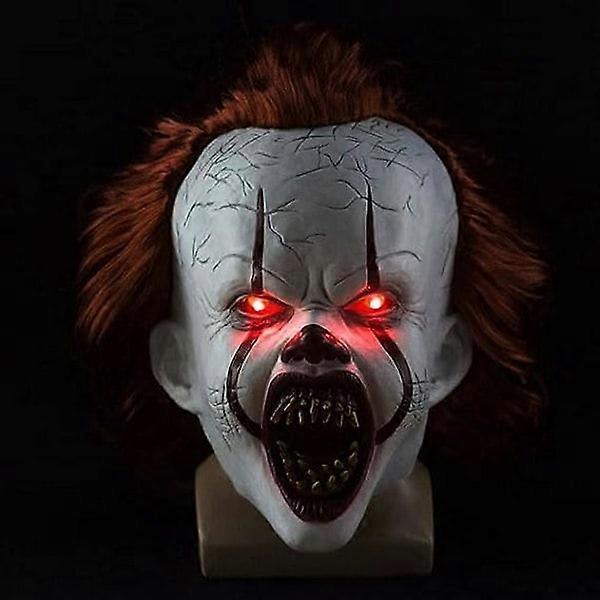 Scary Clown Mask for Pennywise It Cosplay, LED Light Up Horror Mask with Hair, Halloween Latex Adult