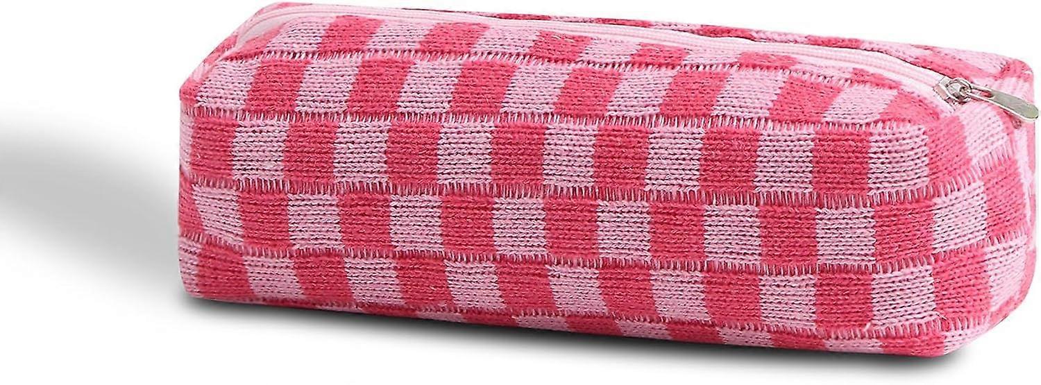 Pen Case College School Storage Bag Pouch Holder Box Organizer Makeup Pouch Cosmetic Bag Aesthetic Cute Pencil Case for Girls Boys Kids (Pink check)