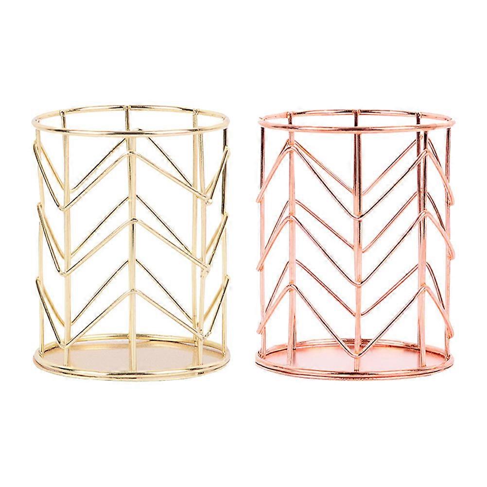 Pencil Organizer Makeup Brush Storage Organizer Home Decoration Golden 8x8cm Storage 2Pcs
