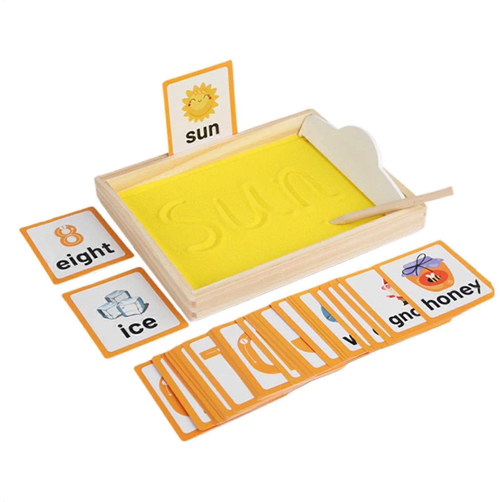 Wooden Sand Tray with Pen Sand and Cards, Preschool Learning Activities