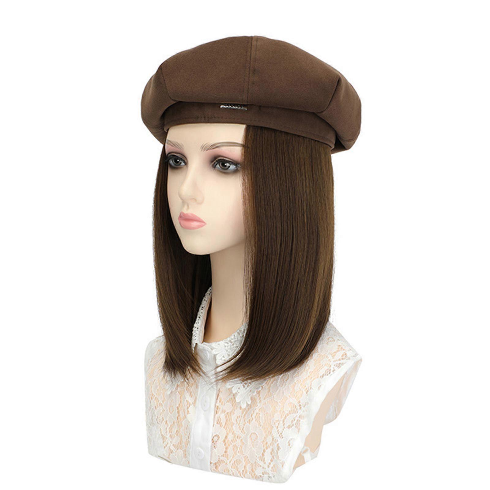 Girls Painter Hat with Hair Extensions French Beret for Holiday Photography Elegant Straight Hair Extensions Brown honey color wi