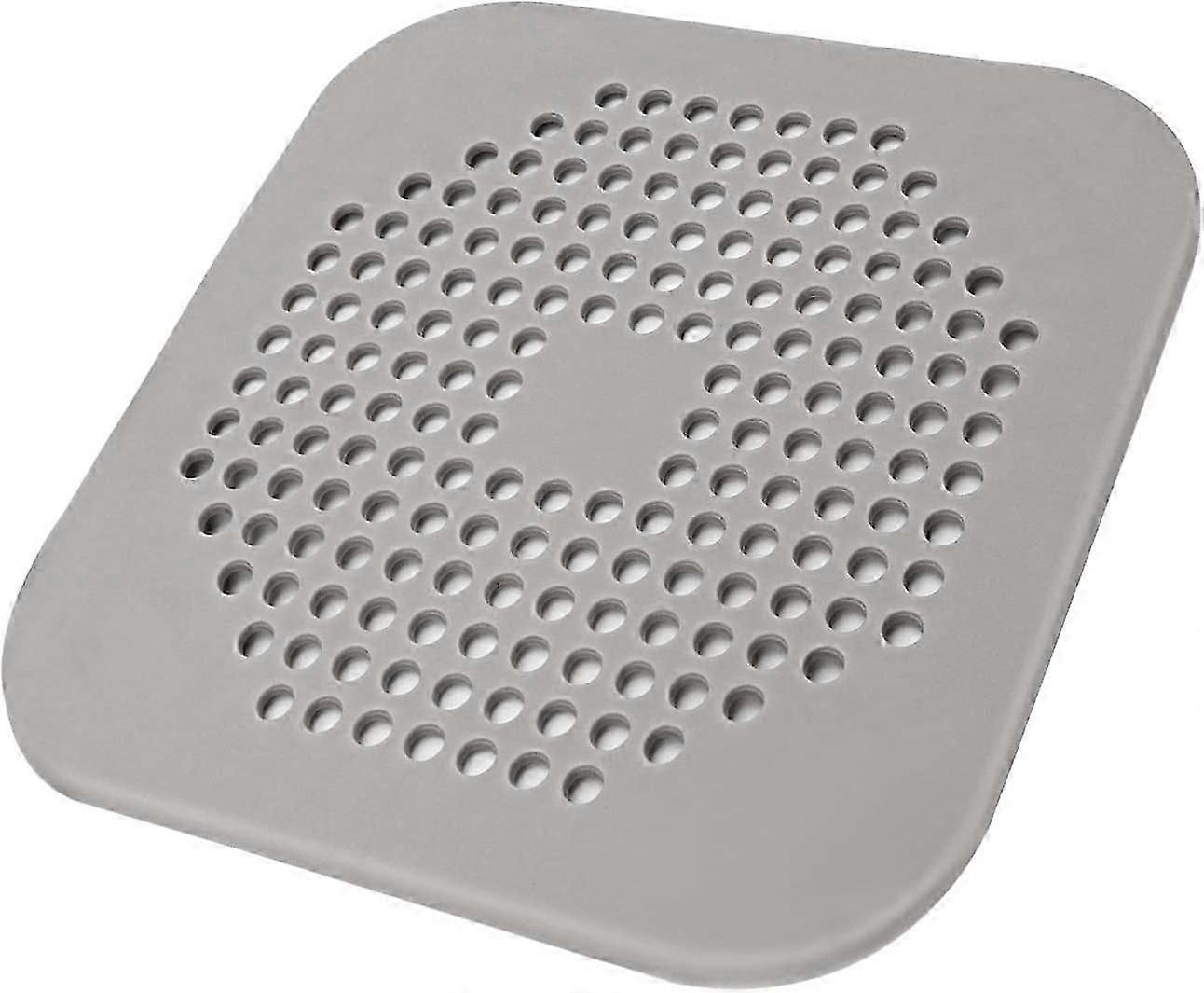 Square Shower Drain Cover Providing Hair Catcher Functionality, 5.4-inch Flat Silicone Plug for Bathroom and Kitchen Use, Grey/White Filter