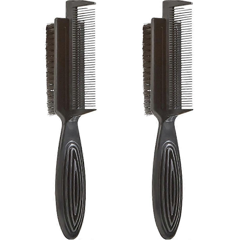 Choose reliable ABS and flexible nylon bristle material, not easy to deformation or , the brush for slicking hair back is a double-sided bristle hairbrush comb that’s can help you create the perfect updo. Its compact size makes it very convenient to carry and store. Features -Color:Black -Material:ABS, nylon bristle -Size:15.40X4.60X2.00cm/6.05X1.81X0.79in - Made of reliable ABS and nylon bristle, comfortable and sturdy, comb is durable and can be used multiple times. - The handle design fits the hand, making it easier to grasp and control without slipping off. - The barber hair cleaning brush can handle most types of hair and beards, let you enjoy hair cutting. - Nylon bristles brush helps distribute the natural oil and promote shine to provide a finished look. - This shredded hair brush is perfect for shaving and hairdressing, essential for every barber shop or salon. Package list: 2 x Hairstyling Hairbrush Combs