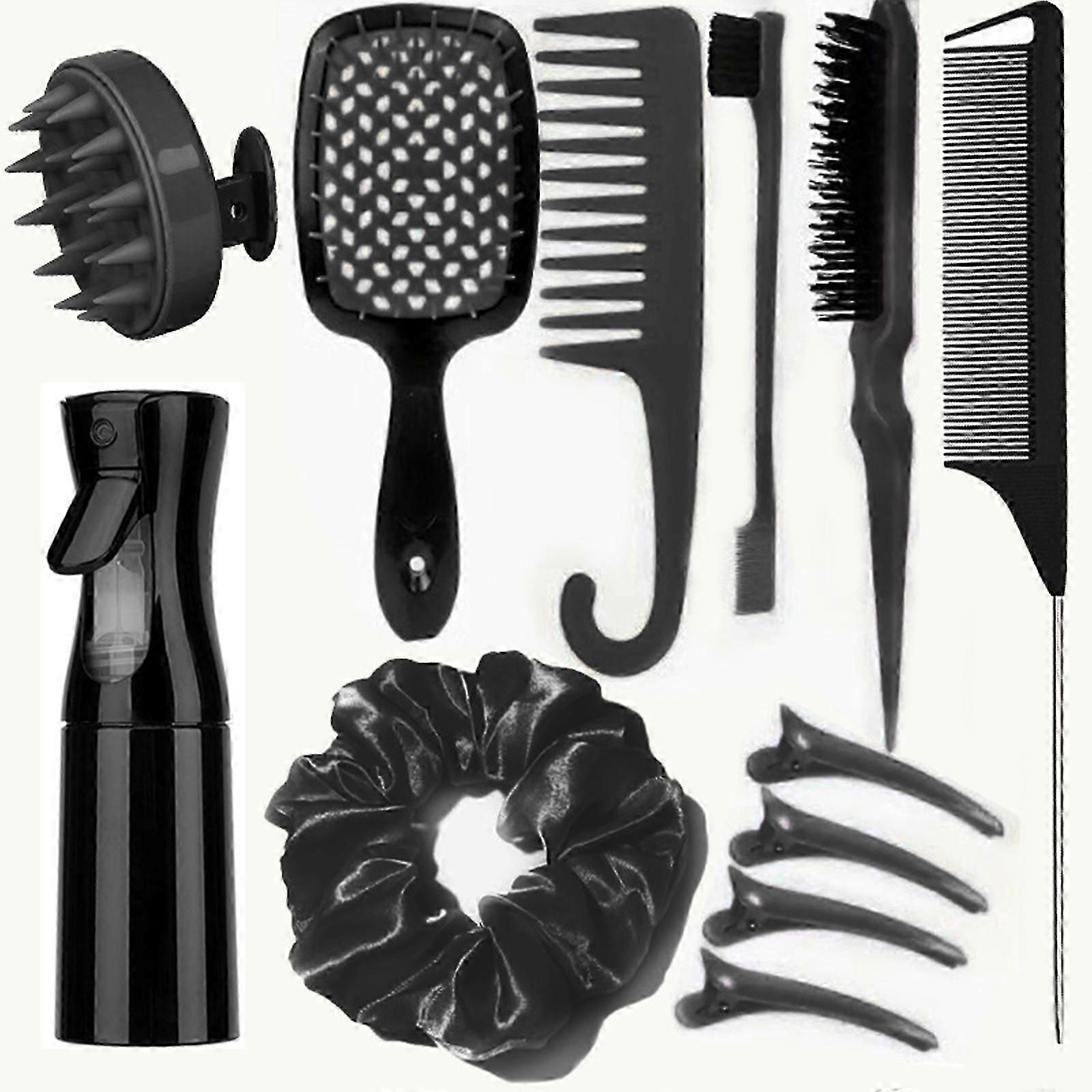 Hair Styling Comb Hair Brush Set, Duckbill Clips, Double Sided Edge Brush for Edge & Back Brushing, Combing, Slicking Hair for Women Girls