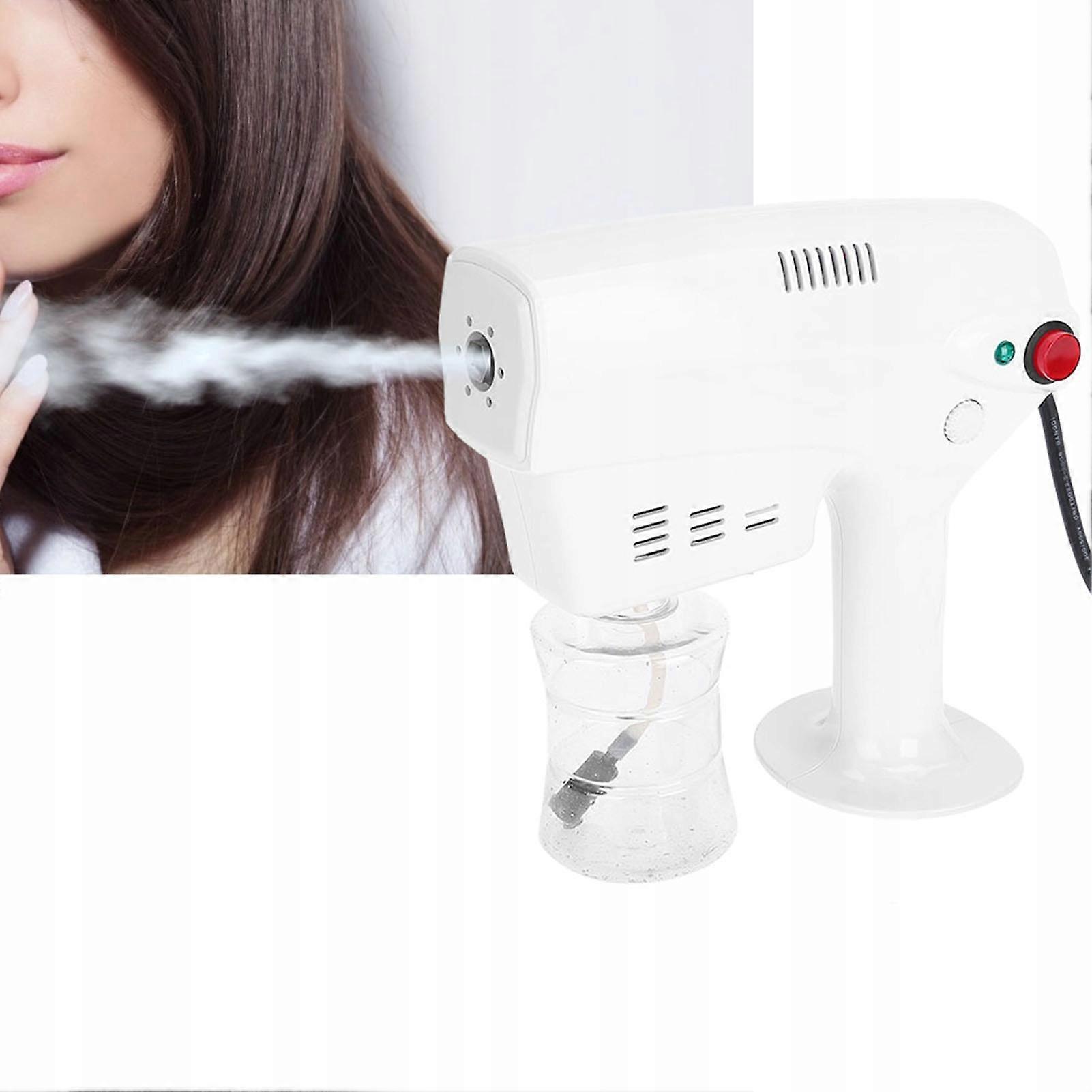 HAIR STEAMER HAIR HUMIDIFIER Nanoparticles can penetrate the hair core and moisturize and nourish the hair to repair damaged hair. It can be used for hair dyeing, hair coloring, hair care treatments, providing a better hair care experience. 0.26 fine steam mist particles can reach the hair root, allowing the hair root to receive nutrients. Made of high quality PA plastic, durable to use. With a water tank capacity of 300 ml, the water tank can last 15-20 minutes, saving time. Suitable for professional use in hair salons or for personal use. Specification: Item Type: Nano Steam Gun Colour white Material: plastic; Water tank capacity: 300 ml Power: 1200 in Plugin type: EU plugin (220 v) Voltage: 220 V Air volume: 20/min List of packages: 1 * main machine Principle of application and description of functions: A supercharged multi-stage heat exchanger tank steam generation device uses the principle of generating more than 1 atmosphere of superheated steam to overheat liquid water from saturated steam into a single water molecule. A water molecule ma a diameter of approximately 0.26 nm. A nanowater molecule with latent heat energy can smoothly penetrate the hair cuticles with a gap of about 1 nm. Entering we hair, it releases latent heat, and the scales open to reach the bundle of fibers inside the hair. The interstitial substance deepens water and promotes the penetration of nutrients or coloring chemicals to repair hair and promote the chemical reaction of the drug and shorten the duration of action. Precautions: When using tego device, it is absolutely necessary to use purified water or distilled water after dechlorination to avoid residual chlorine in tap water: chloroform itp. Getting into the human body through breathing will poison the respiratory tract and mucous membrane of the skin. Contact with hair and skin will cause hair to crack and split, and also allows the skin to whiten the skin layer and cause itchy skin allergies, injuring operators and customers. Why nanopairs look purple when viewed: When superheated water vapour molecules are injected into the air, some water molecules are mixed with gaseous water molecules at normal air temperature to form a mixed gas of water nanoparticles (0,26 nm) and small water droplets with a diameter of about 312-405 nm. Among them, because small droplets of water can reflect the shortest wavelength visible in the human eye, purple light, purple light, will be displayed. Nanowater molecules with a diameter of 0,26 nanometers do not reflect light and are transparent. Purple steam nanomixture --- small droplets of water about 312-405 nanometers in diameter in the middle that can reflect purple light. Blue nano-mixed steam --- a small droplet of water about 460-480 nm in diameter inside can reflect blue light. Conclusion: Im bluer the water vapor, im larger the small water droplets in the nano-mixed steam, the less they penetrate the scales, the best state of nano-water vapor: transparent to lavender.  If the water vapor ma white in color, it indicates the overall condition of the water vapor. The particle diameter of water droplets is too large and it is more difficult to penetrate the scales.