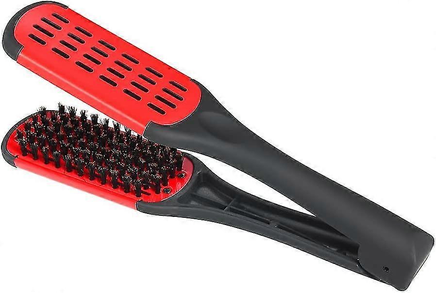 Hair Straightening Comb Double Sided Bristle Hair Brush Clamp Straightener Natural Fibres