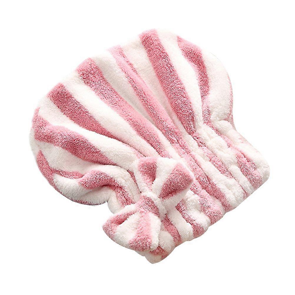 Hair Drying Caps Stripes Bowknot Caps Water Absorption Hat Headband Bathroom Supplies (Pink)
