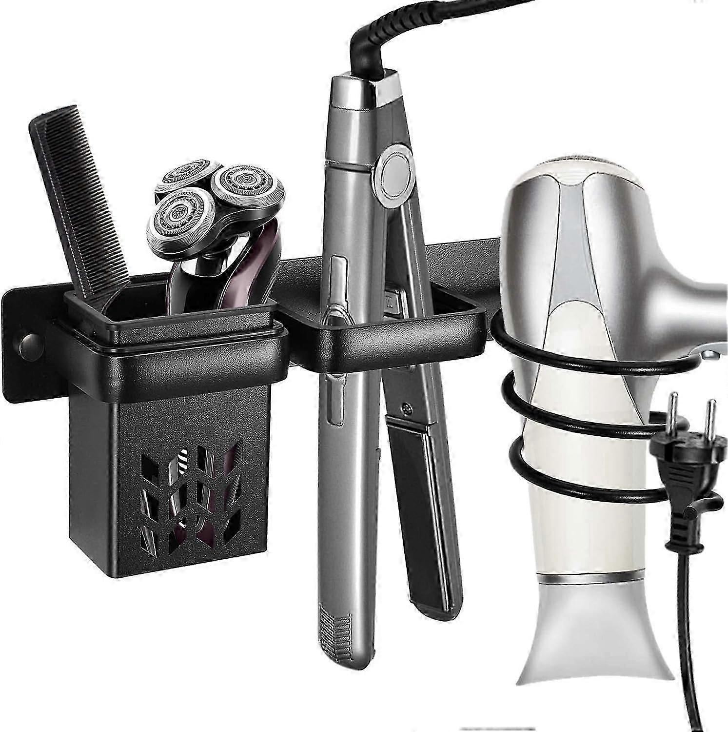 Hair Dryer Holder, Hair Dryer and Straightener Holder, Aluminum Straightener Holder, Wall Mounted Hair Dryer Organizer Holder(Black)