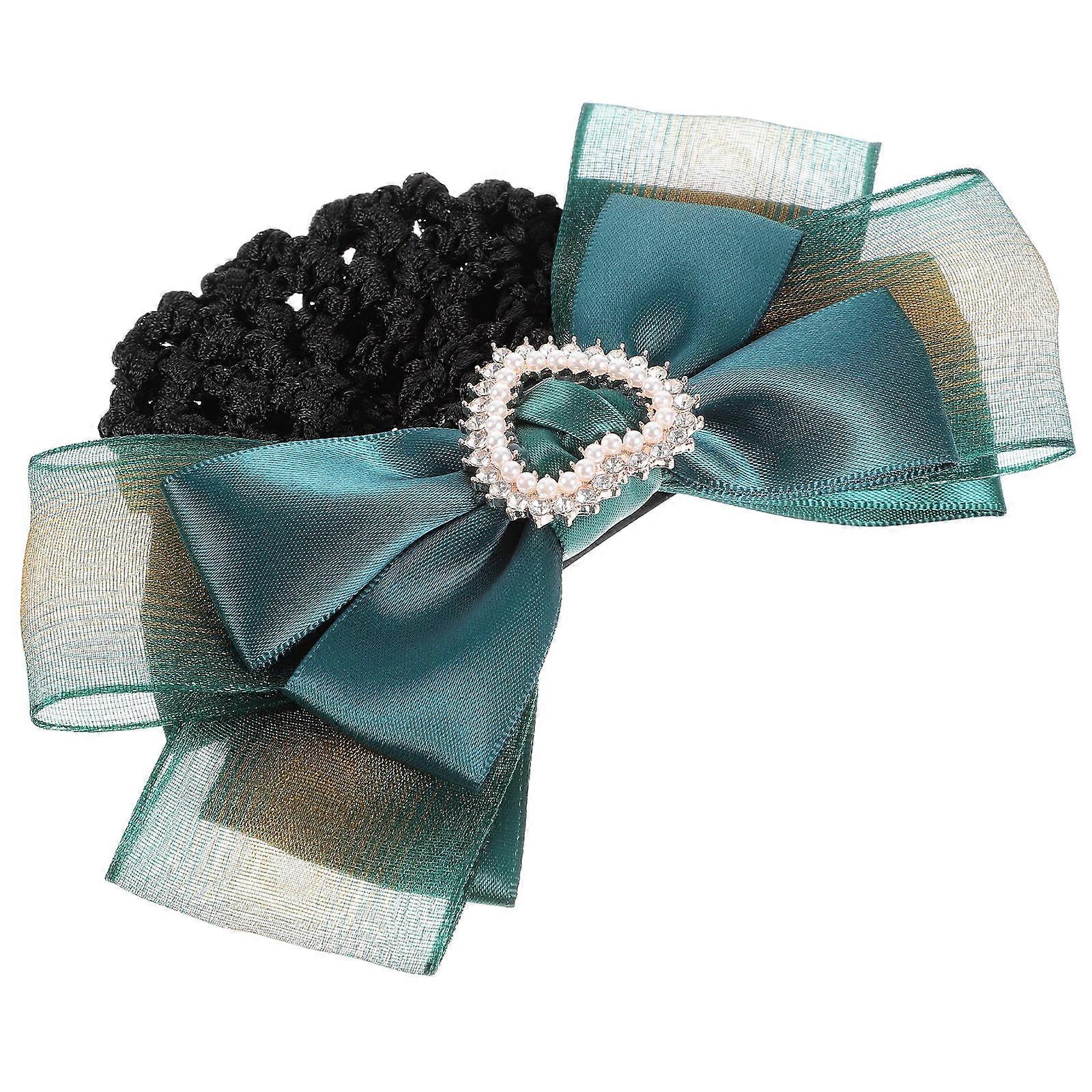 Hair Bun Bowknot Cover Barrette Mesh Hairnet for Hotel Service Professional Hairstyles Green 13.00X11.50X3.50CM Hair Covering 1Pack