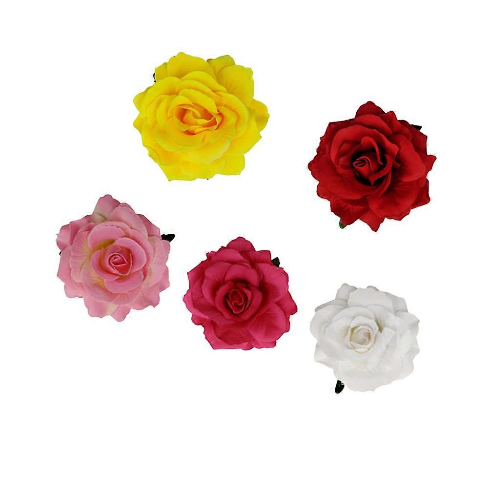 Hair Flower Clip Simulation Flower Brooch For Women Travel Beach Yellow 5Pcs