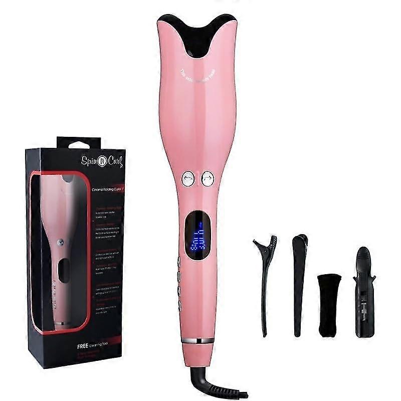 Hair Wand Curling Iron Rotating Ceramic Lcd (pink ) Curler Spin N Curl