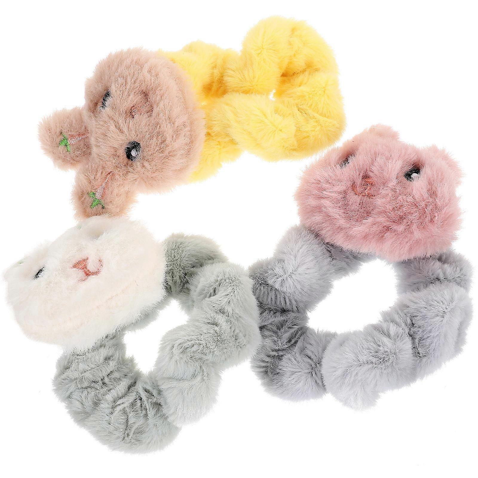 Hair Fixing Bracelet Cartoon Bunny Hair Ties Elastic Hair Bands Plush Material Various Occasions 3Pcs For Girls Women
