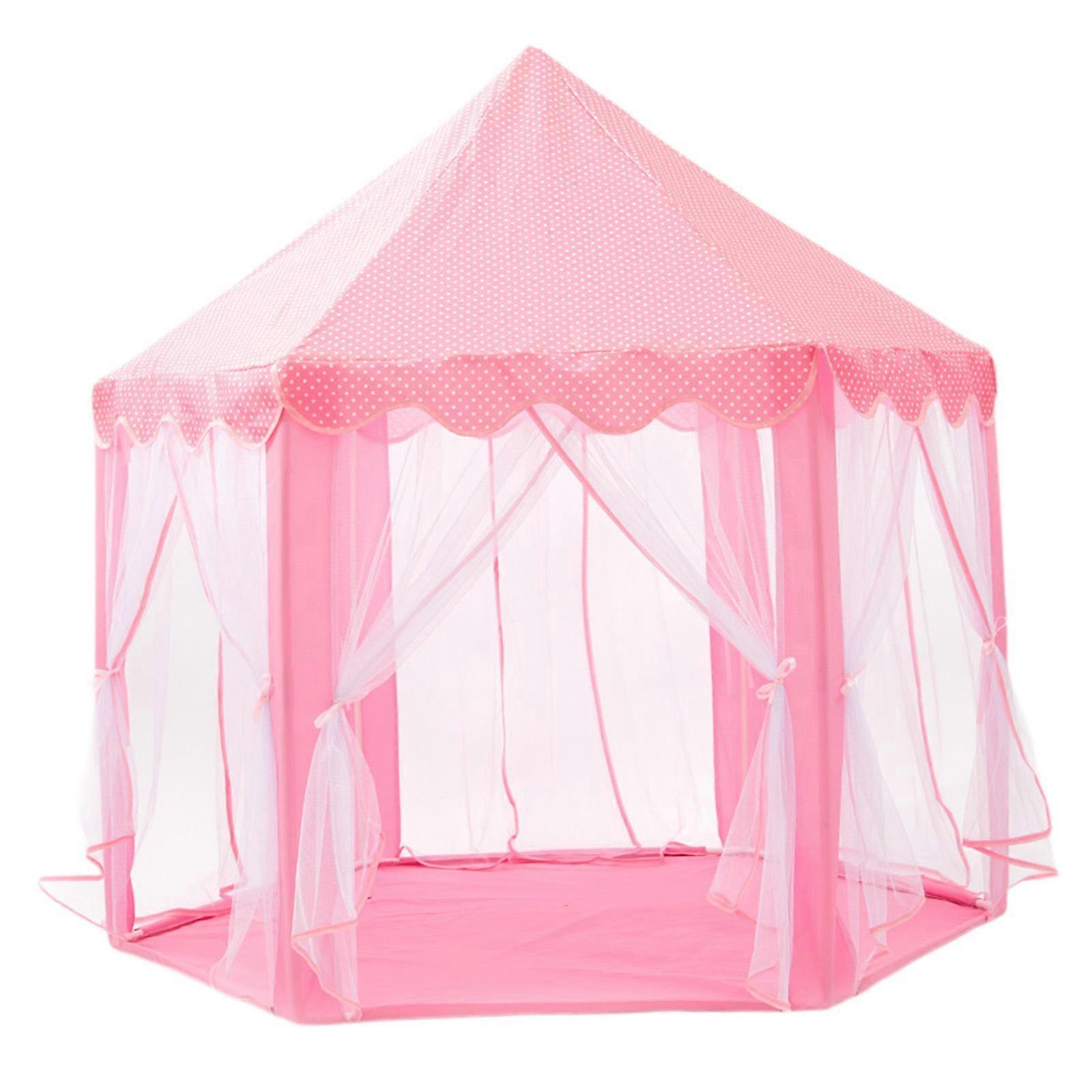 Hexagon Playhouse Children Girls Game Camping Park Princess Castle Play Tent Pink