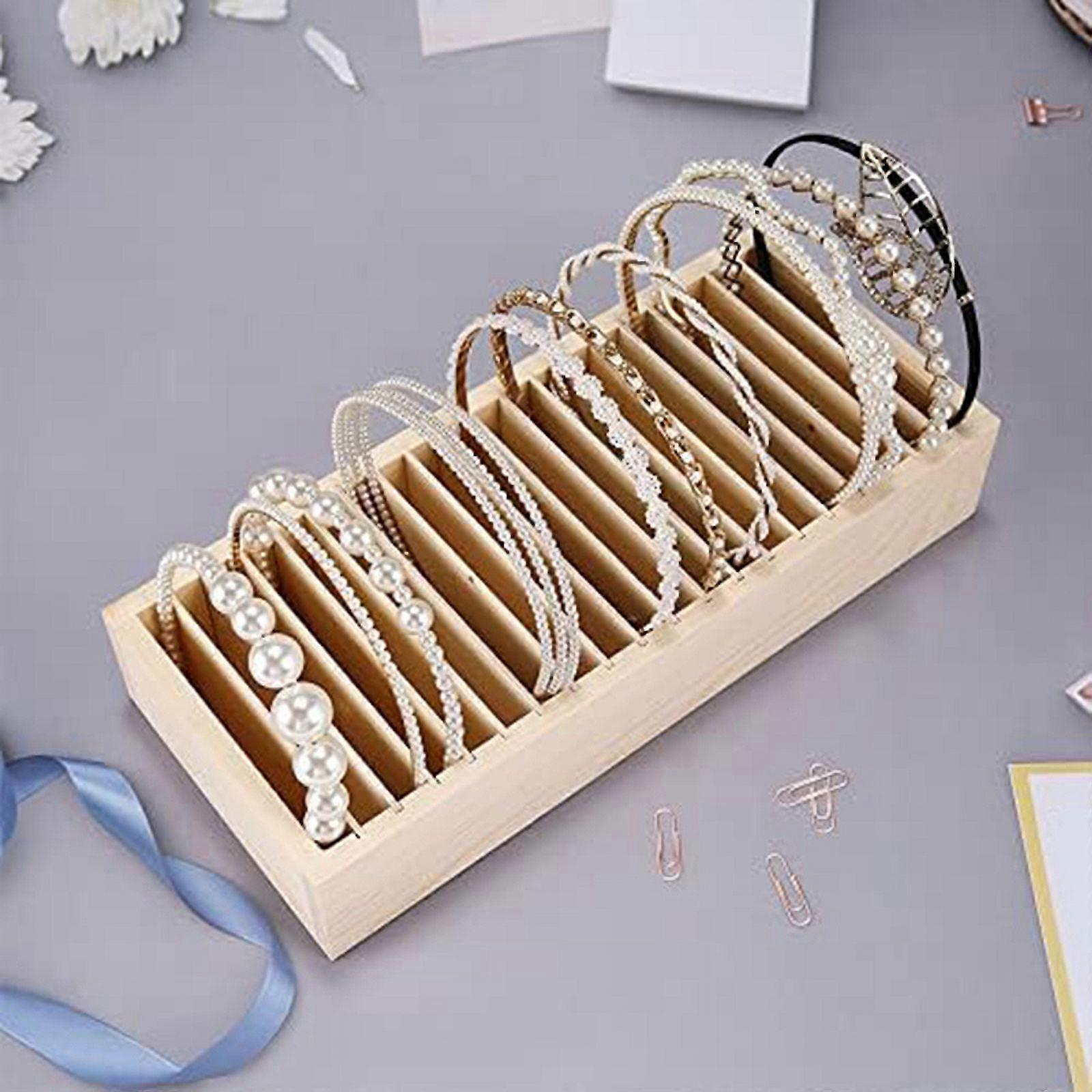 Headband Holder, Hairband Storage Display Box, Wood Scrunchie Storage Organizer for Girls, Headband Display Stand