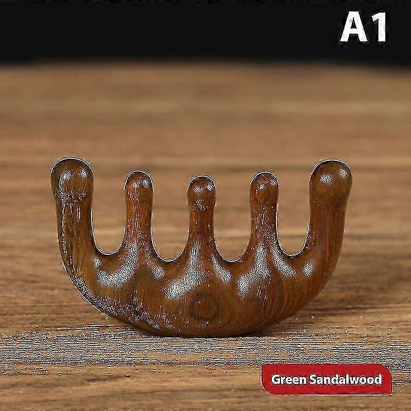 Head Meridian Massage Comb Green Sandalwood Five Wide Tooth Acupuncture Therapy