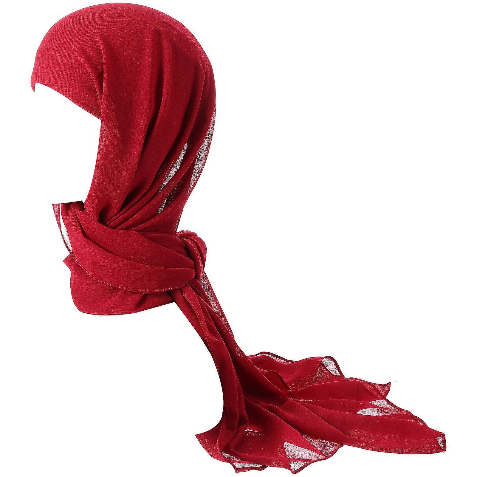 Head Wrap Hijab Scarf Women Hijab Dark Red 175x98x0.2cm Comfortable to Wear 1Set