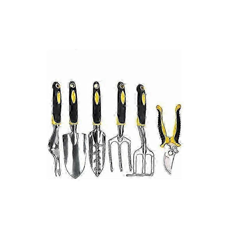 Heavy Duty Gardening Kit, Cast Aluminum Alloy Tools with Ergonomic Handle for Weeding Digging Transplanting Pruning Loosening Soil, 6 Piece