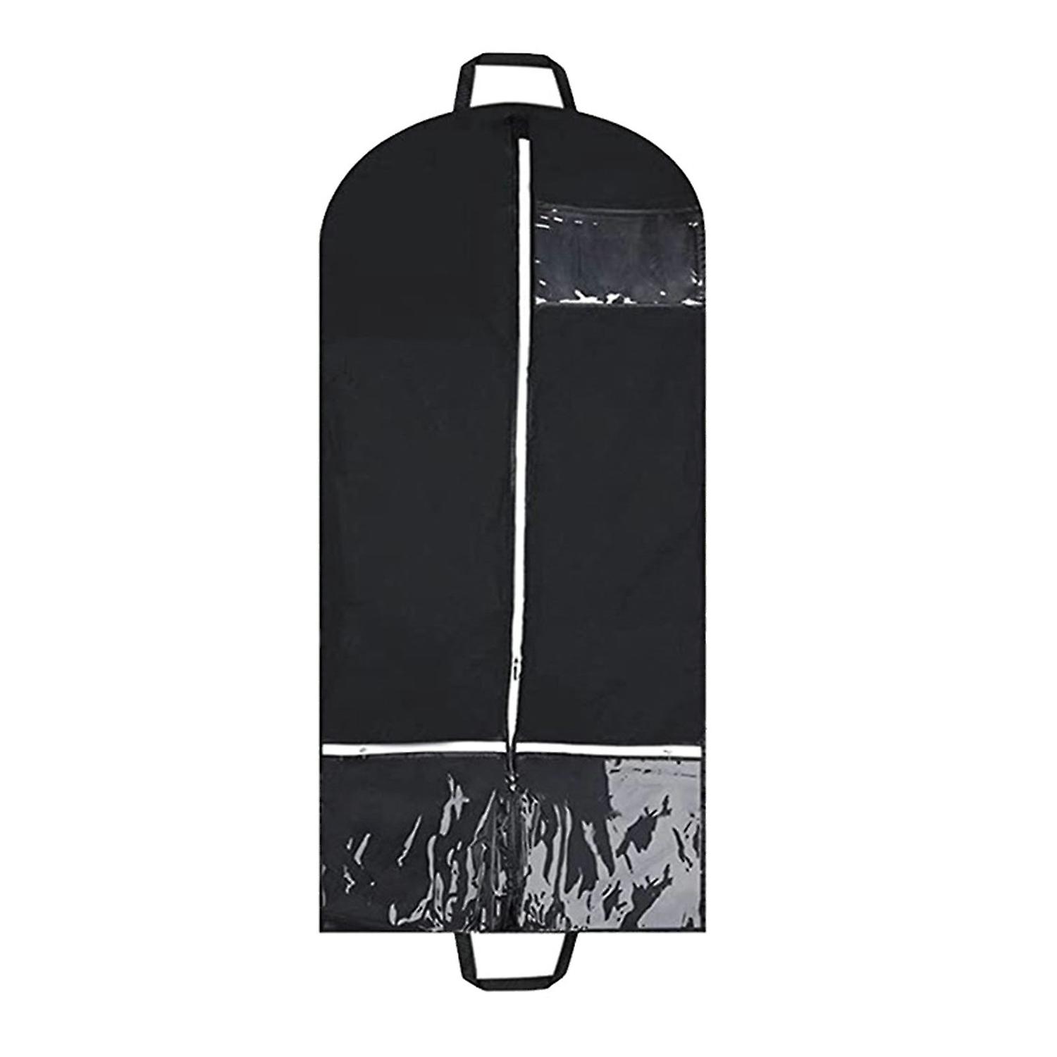 Breathable Fabric: Our clothes bag is designed with high-quality breathable fabric to keep dust out while providing good ventilation for your garments. And, the clear window allows you to easily identify the suit inside without opening the bag, saving you time and effort. Pocket Design: Featuring 2 large breathable pockets at the bottom, this garment cover offers ample space to store boots, shoes, ties, scarves and other items, making it a convenient all-in-one storage solution. Versatile Use: Our large capacity garment bags can accommodate multiple items, such as tuxedos, dresses, winter coats, trousers, tops, slacks, and more. It's ideal for use in wardrobes, and closets. Upgraded Zippers: Say goodbye to broken or slipping zippers. Our garment bags feature strong and durable zippers that ensure smooth operation and long-lasting performance for hassle-free garment protection. Clothing Protection: Designed to hang and protect various types of clothing in different settings, our clothes dust bag is an essential accessory for any home. Description: Made from high-quality polyester, the garment bag is designed to protect and store your valuable garments with ease. With the capacity to hold multiple items in one bag, it's perfect for wardrobe organization and travel. You can use it to store tuxedos, gowns, dresses, winter coats, trousers, tops, slacks and more. Featuring 2 large breathable pockets at the bottom, you can conveniently store a pair of ankle boots on one side and your essential accessories on the other. Save time searching for matching shoes, ties, and scarves with this all-in-one storage solution. The breathable fabric keeps dust away while providing excellent ventilation to keep your clothes clean. Our garment cover also includes a clear window that allows you to see which suit is inside without opening the bag. The double handles make transportation easy. This product is versatile enough for use in wardrobes, closets, and so on. Item Name: Garment Storage Bag Material: Polyester Features: Dustproof, Breathable Fabric, Large Capacity Size Details: L: 128cm/50.39", W: 58cm/22.83" (Approx.) Notes: Due to the light and screen setting difference, the item's color may be slightly different from the pictures. Please allow slight dimension difference due to different manual measurement. Package Includes: 1 x Garment Storage Bag