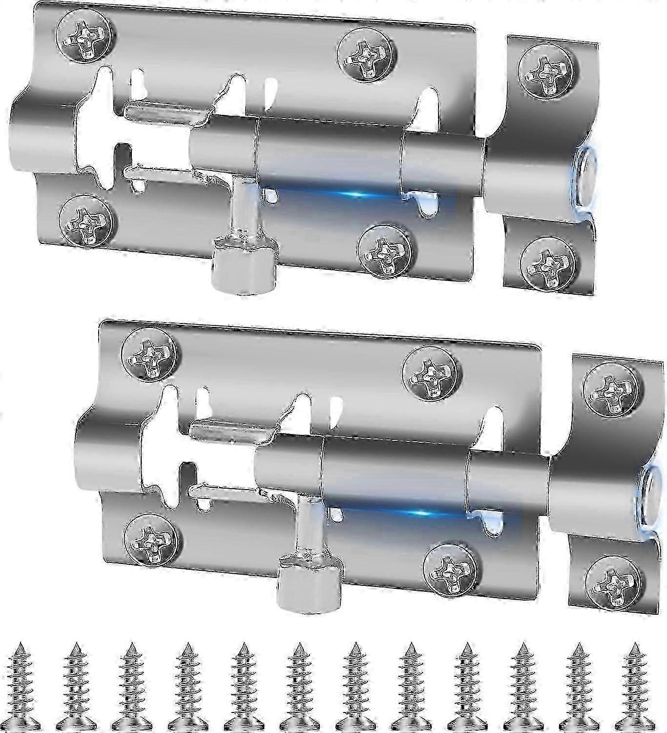 Package Content: You will receive 2 pieces of door lock, enough quantity meets all your needs. Premium Material: The keyless entry bolt locks for doors are made of good quality metal materials, strong and sturdy. Special Design: The door lock latch locks slide is designed with flexible installation options, allowing for a 360-degree installation. This adjustable locking device can be installed in any orientation, whether vertically or horizontally, without any limitations. Easy to Use: Installing a sliding gate latch is an uncomplicated task that only requires a drill to create the necessary holes and screws to fasten it. The process entails attaching the latch body to the door or window frame, followed by sliding the latch bolt into the strike plate. The latch bolt should be adjusted and tightened until it is firmly fixed in place. Wide Application: A sliding latch is primarily employed in various settings such as bedroom doors, closets, bathrooms, dog houses, lofts, chicken coops, and barn doors. By installing a sliding latch lock on your bedroom door, you can effectively deter intruders. Notes: Due to manual measurement, the size and weight may have a certain error. Due to the difference between different monitors, there may be a slight color difference existed.