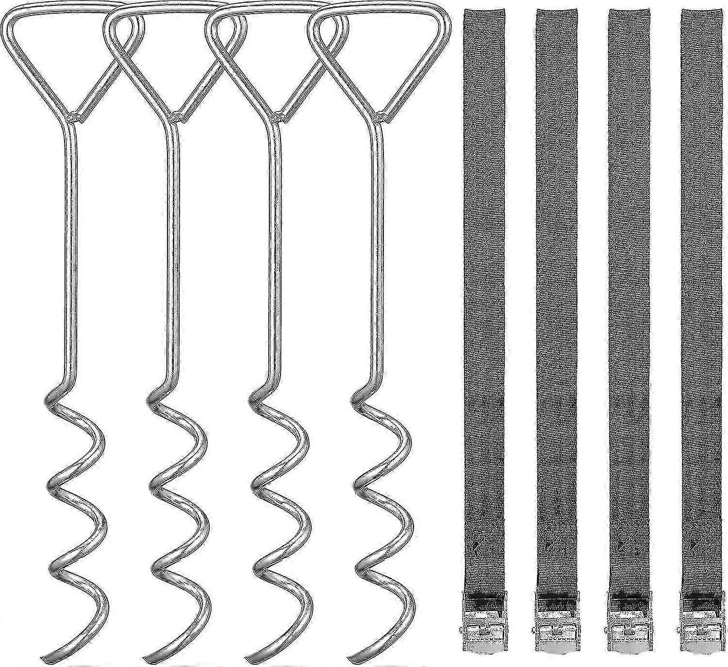 Heavy Duty Trampoline Anchor Kit - 4 Galvanized Stakes with Ratchet Straps