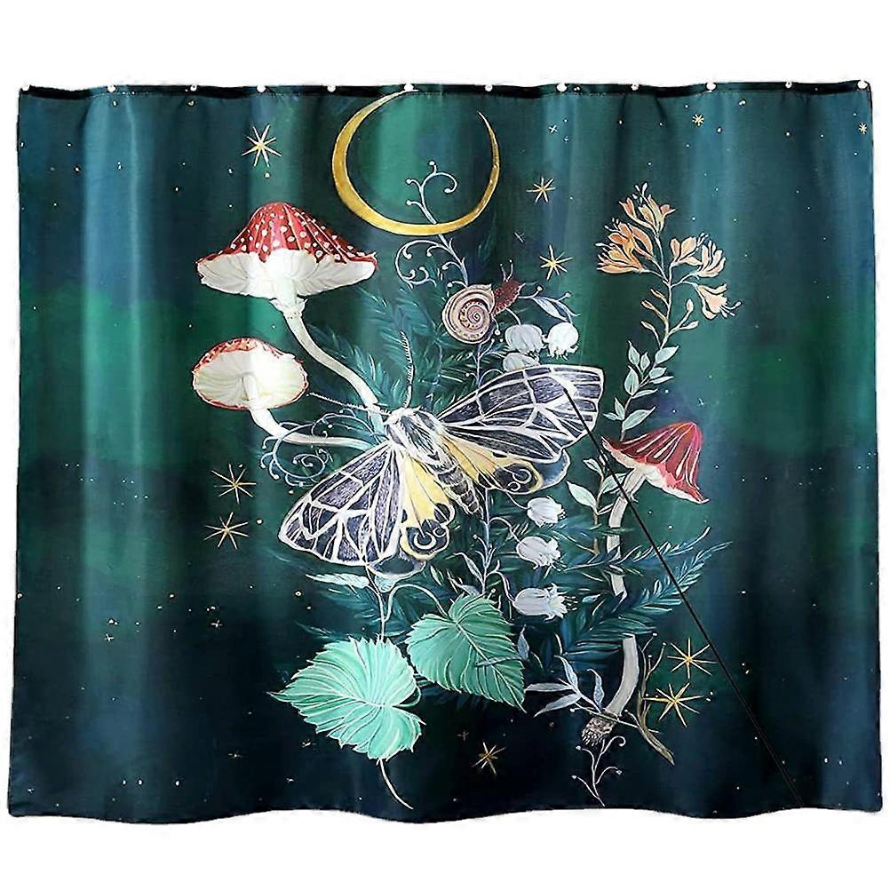 Heavy Duty Shower Curtain Bohemia Style Bathroom Supplies Dark Green 180x180cm Waterproof 1Set