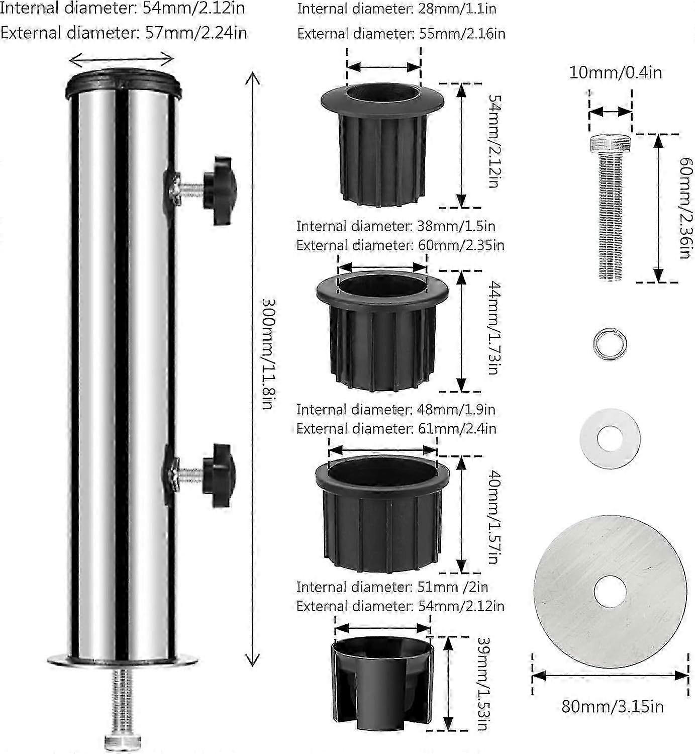 Universal parasol base with stainless steel tube for heavy duty stand
