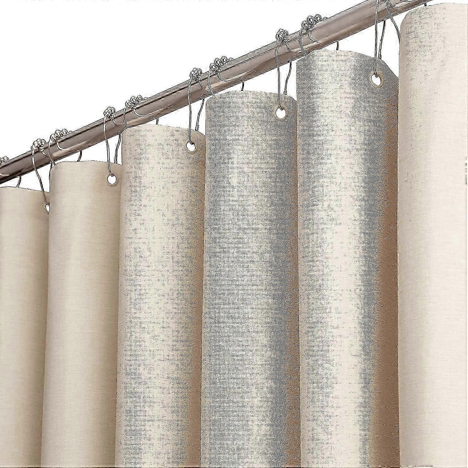 180 X 180 Cm - Beige/cream Fabric Shower Curtain, Textured Heavy Duty Polyester Fabric Shower Curtain Set With 12 Plastic Hooks, Luxury Waterproof Dec FG05 Linen Texture- Made of premium polyester fabric, non-toxic, wrinkle-resistant and non-fading. Plus, the weighted hem design can hold its shape and won't bulge like lightweight shower curtains Premium Quality- Uses advanced two-tone yarn parallel weave, 2.6 times denser than traditional weave. High density weave and heavy duty polyester fabric provide maximum protection for your privacy. The simple and generous solid color style instantly improves the taste of your bathroom and allows you to enjoy a luxurious hotel bath at homeStandard Size- (182cmx182cm). 12 rust-proof metal grommets (to prevent tearing) that fit most standard shower hooks or rings. The package includes 1 cream shower curtain and 12 plastic hooks (convenient to install). Water Resistant- This waterproof fabric shower curtain can repel water and promote the formation of water droplets, which makes water run off the surface quickly. It can effectively prevent moisture and water from leaking out of the bathroom. Support machine wash (please machine wash in cold water with mild detergent and hang dry. Do not bleach or tumble dry)