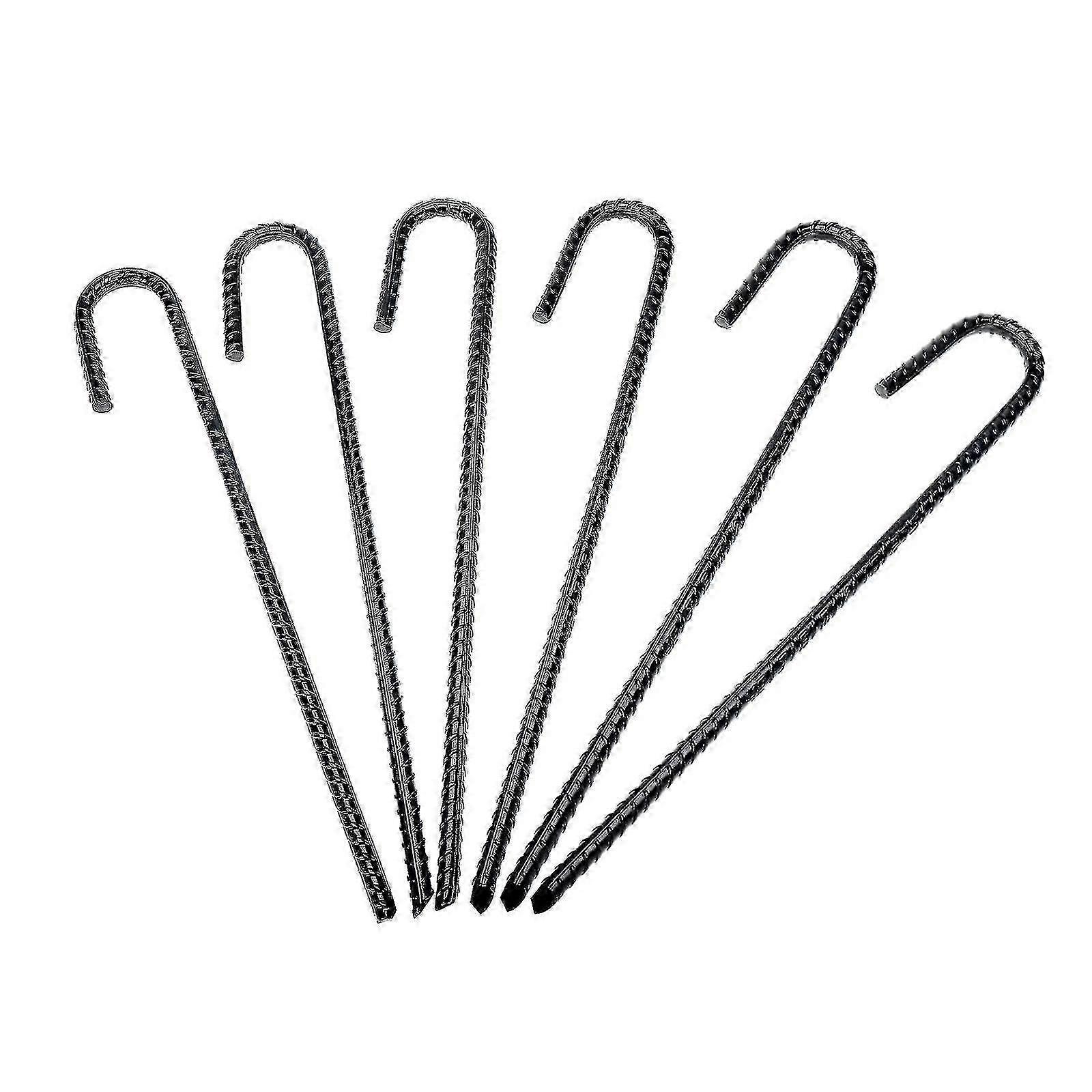 Heavy Duty Rebar Stakes, 6 Pack Metal Garden Stakes, Black 12 Inch Ground Anchors for Tent, Trampoline, Canopy, Shed Securing