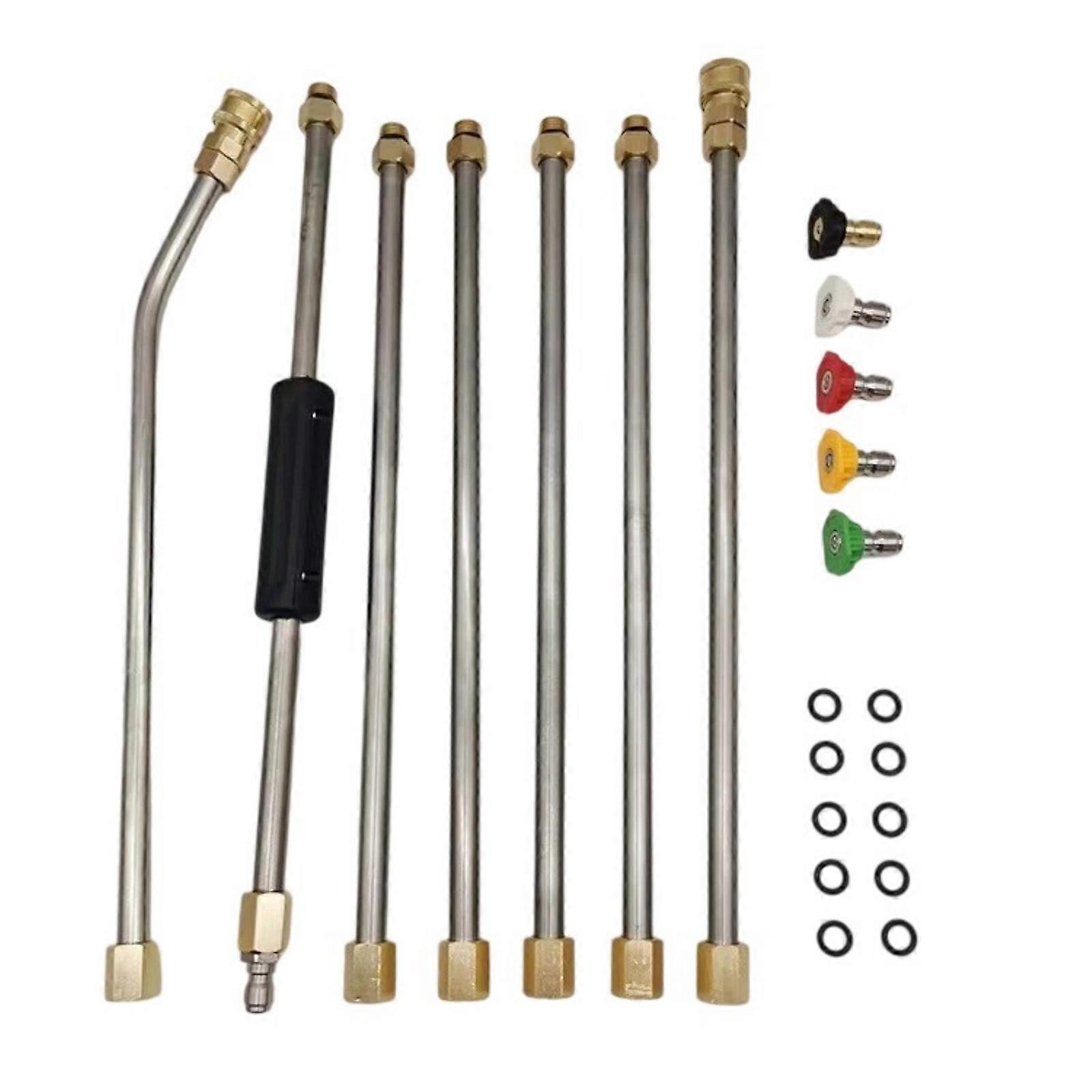 Heavy Duty Pressure Washer Accessory Set Extension Wand Upgrade Curved Lances and 5 Sprays Nozzle Tips Multi Angle