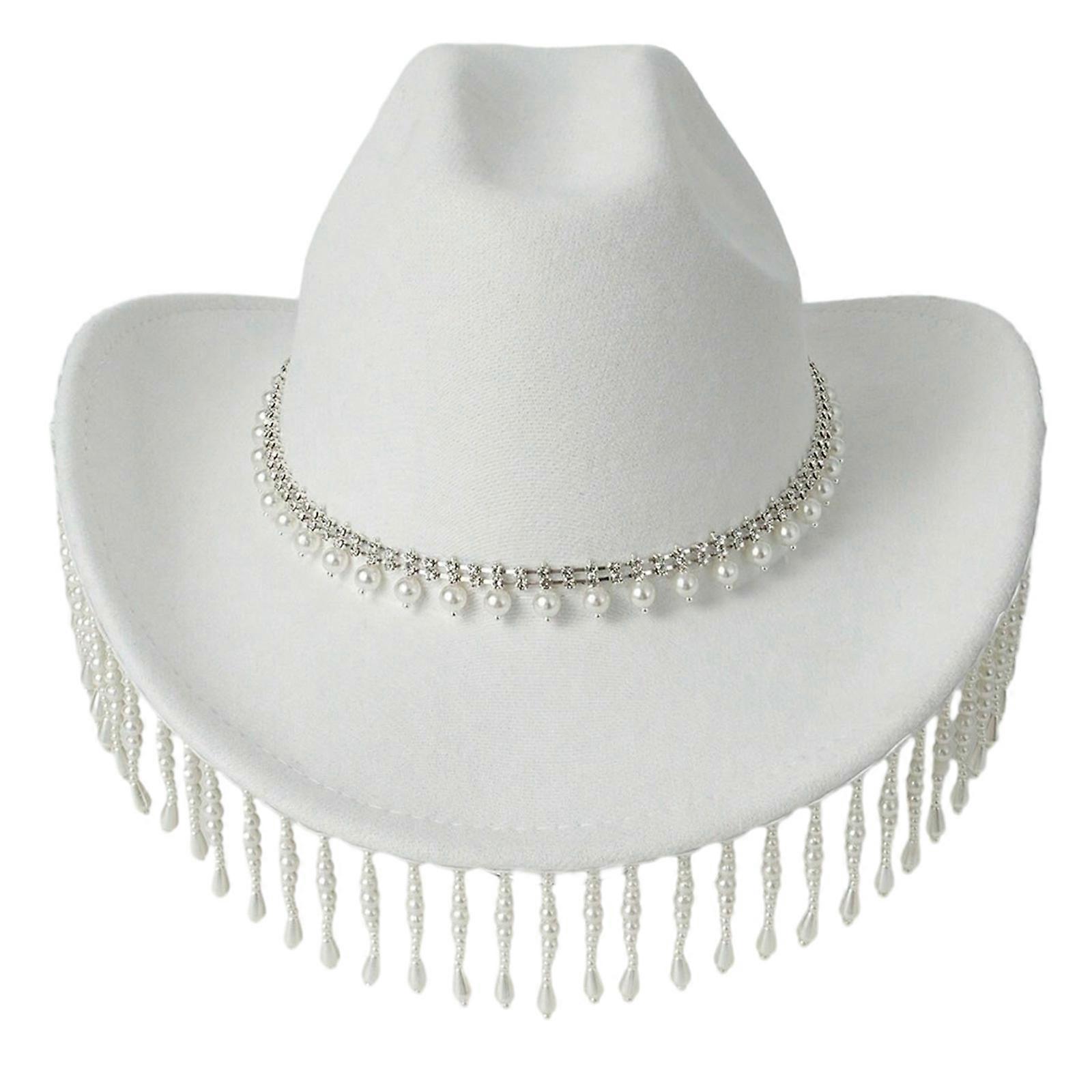Heavy Pearls Cowboy Hat Tassels Knight Hat for Disco House Cocktail Parties Vacation Sparkly Tassels for Comedian Actor White