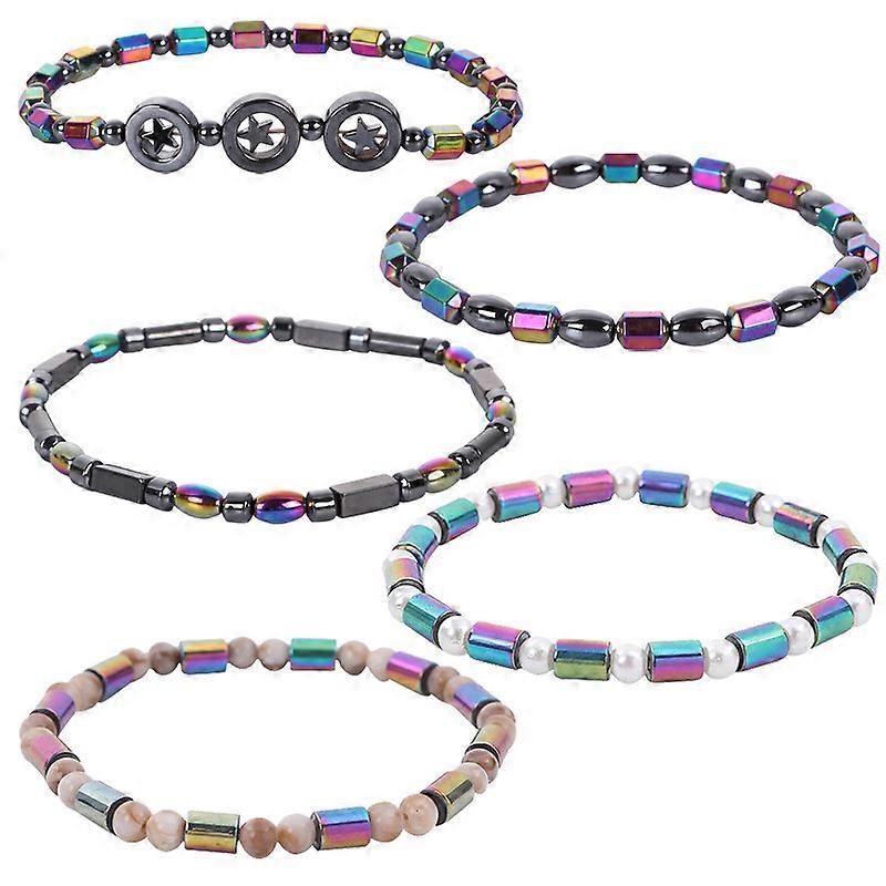 Hematite Anklet, 5 Pieces Magnetic Anklet, Magnetic Therapy Bracelet for Anxiety Relief, Magnetic Health Care Bracelet, Slimming Bracelet, Magnetic He