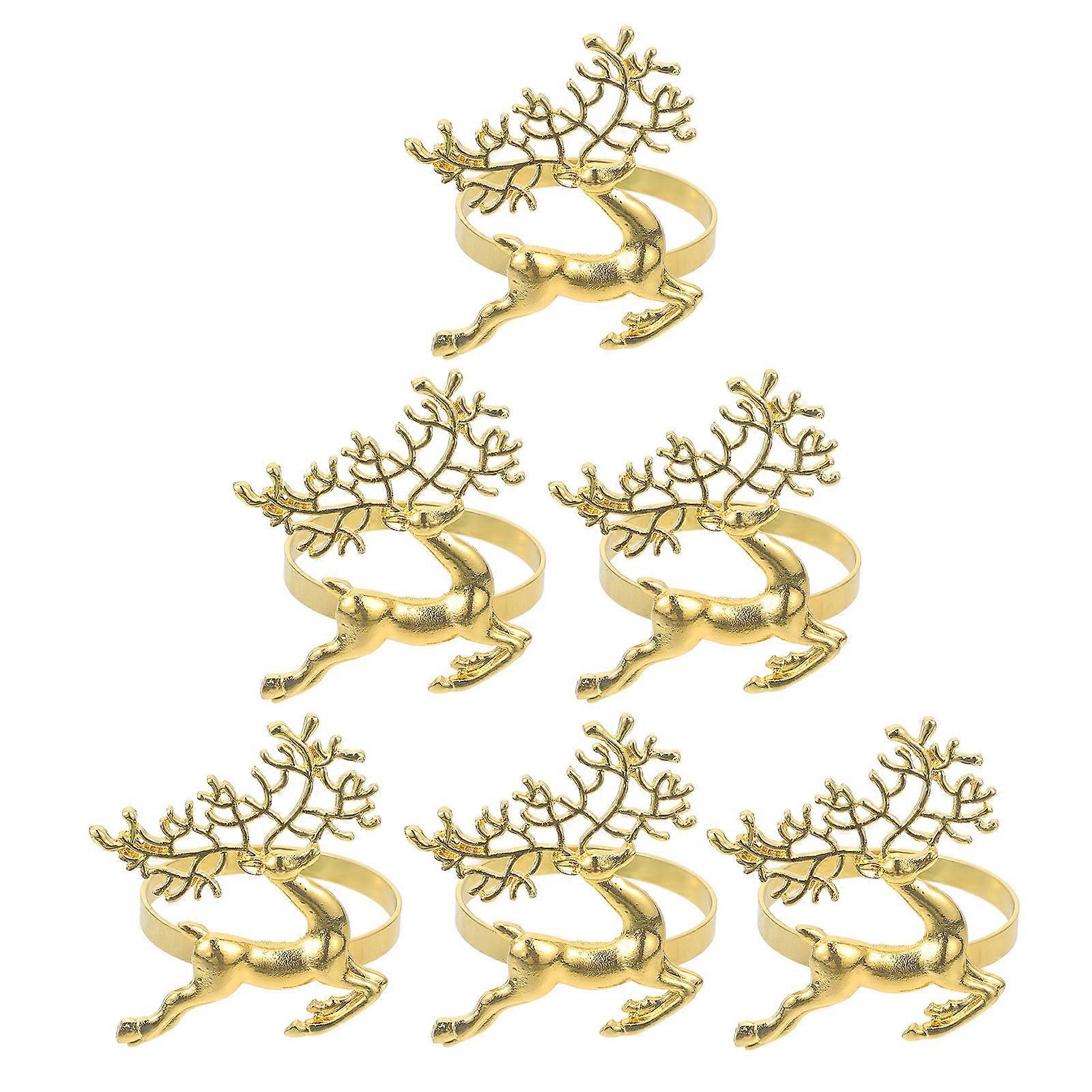 Elk Shaped Napkin Rings Deer Napkin Buckles Christmas Party Table Decoration Golden 5.00X4.00X4.00CM 6Pcs
