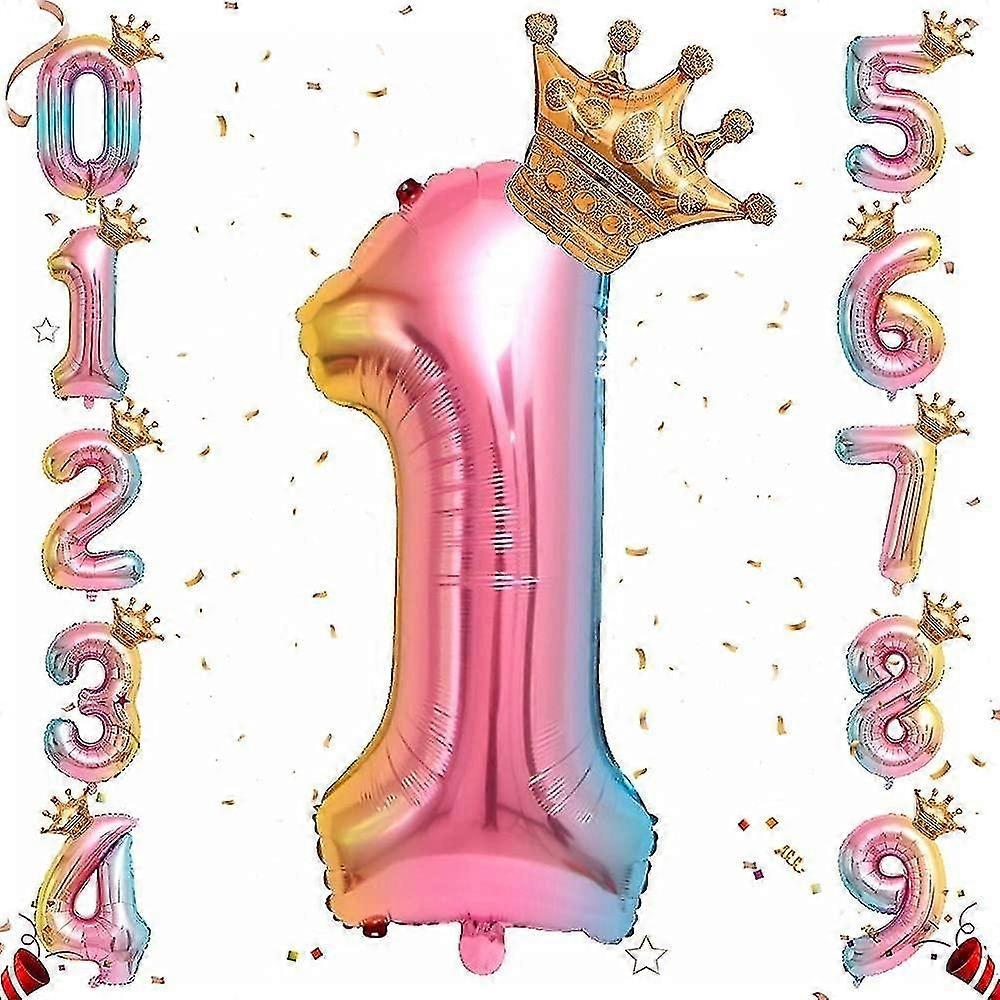 Helium Foil Number Balloon, 32 Inch Rainbow Gradient Number Balloons with Crown for Birthday, Birthd