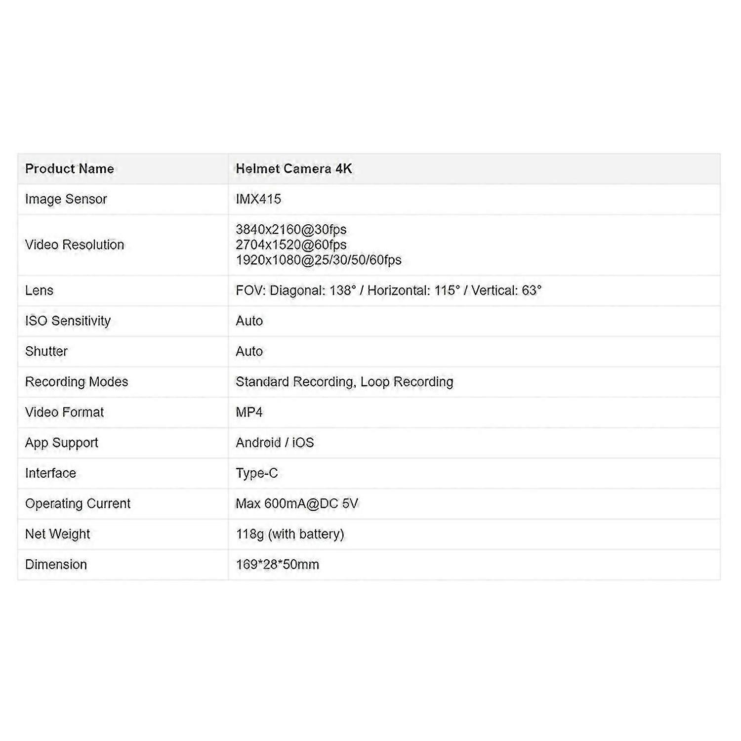 Helmet Camera 4K Face Mask Recorder IMX415 1920x1080 60fps