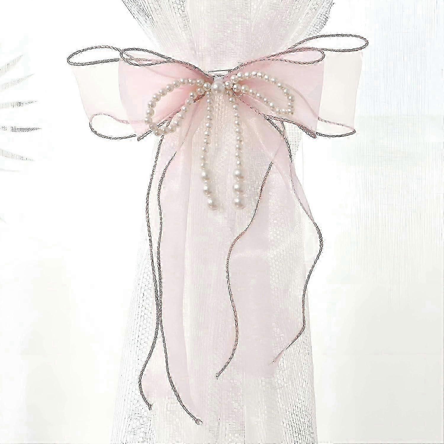 Bow Curtain Tiebacks 2 Pcs,Butterfly Curtain Ties with Pearls,Bowknot Curtain Ties for Home Decorative-pink-86cm(33.86in)