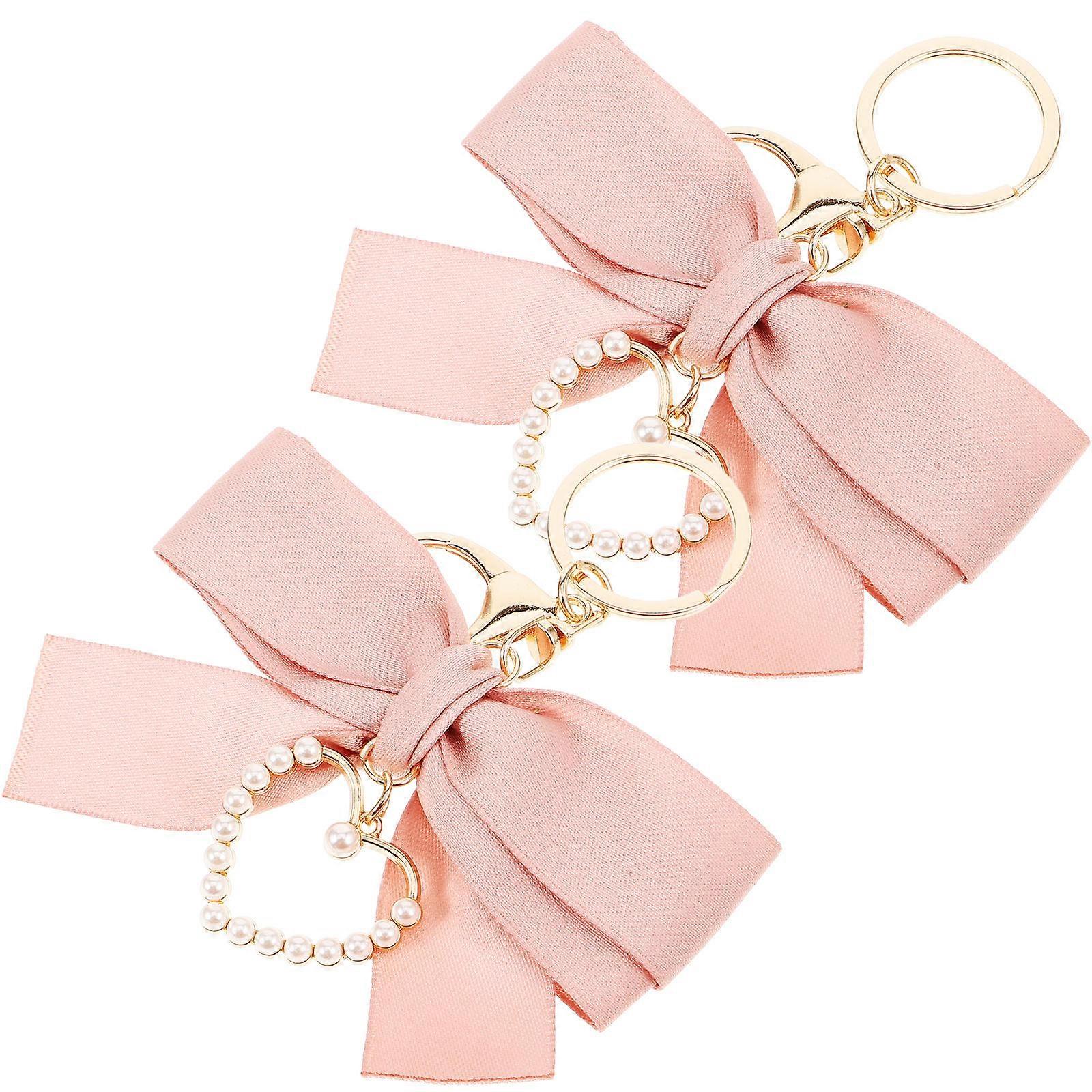 Bow Keyring Pink Metal Fabric Purse Keychain Fashion Enhancement 2Pcs