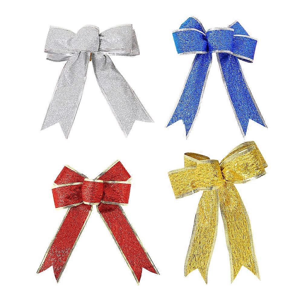 Bow Tree Decorations 4Pcs Christmas Shiny Bowknot Accessories For Festive Atmosphere Enhancement In Assorted Color