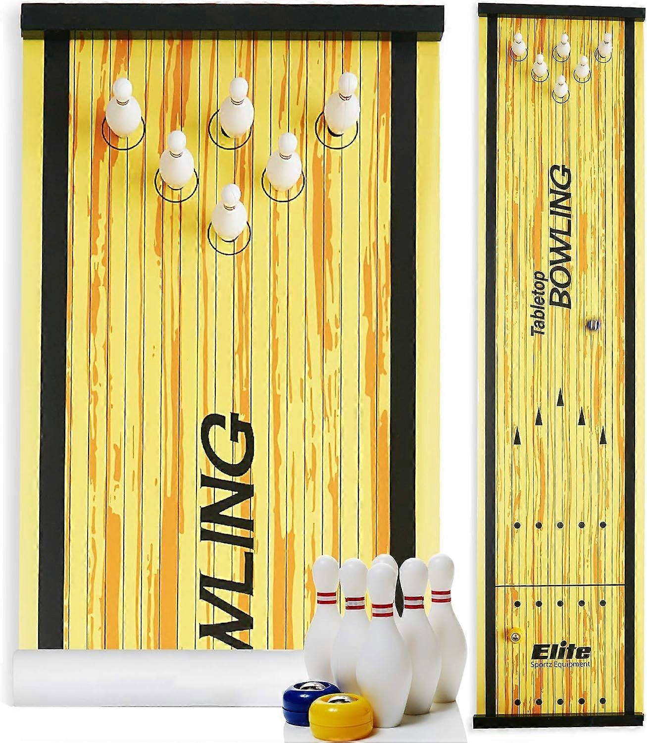 Bowling game - indoor tabletop game for the whole family, children and adults - portable set with lanes, 6 pins, 2 bowl bearings