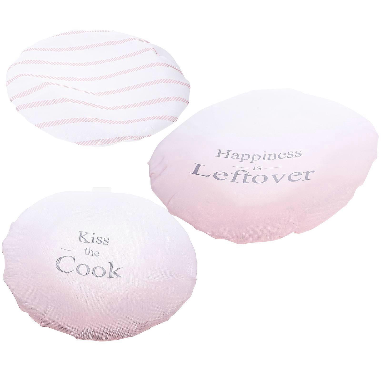 Bowl Covers Reusable Elastic Fabric Dish Plate Lids Pink For Home Kitchen 3Pcs