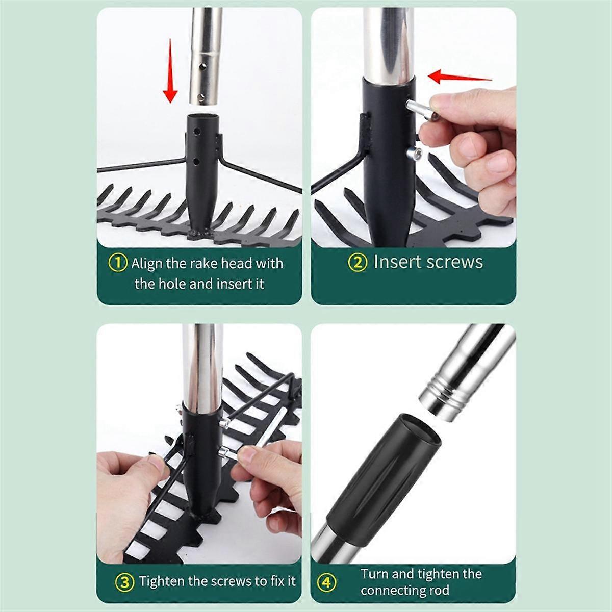 Bow Rake Heavy Duty Garden Rake 17 Steel Tines Metal Head Rake Tool for Loosening Soil Gathering Leaf Leveling Lawn