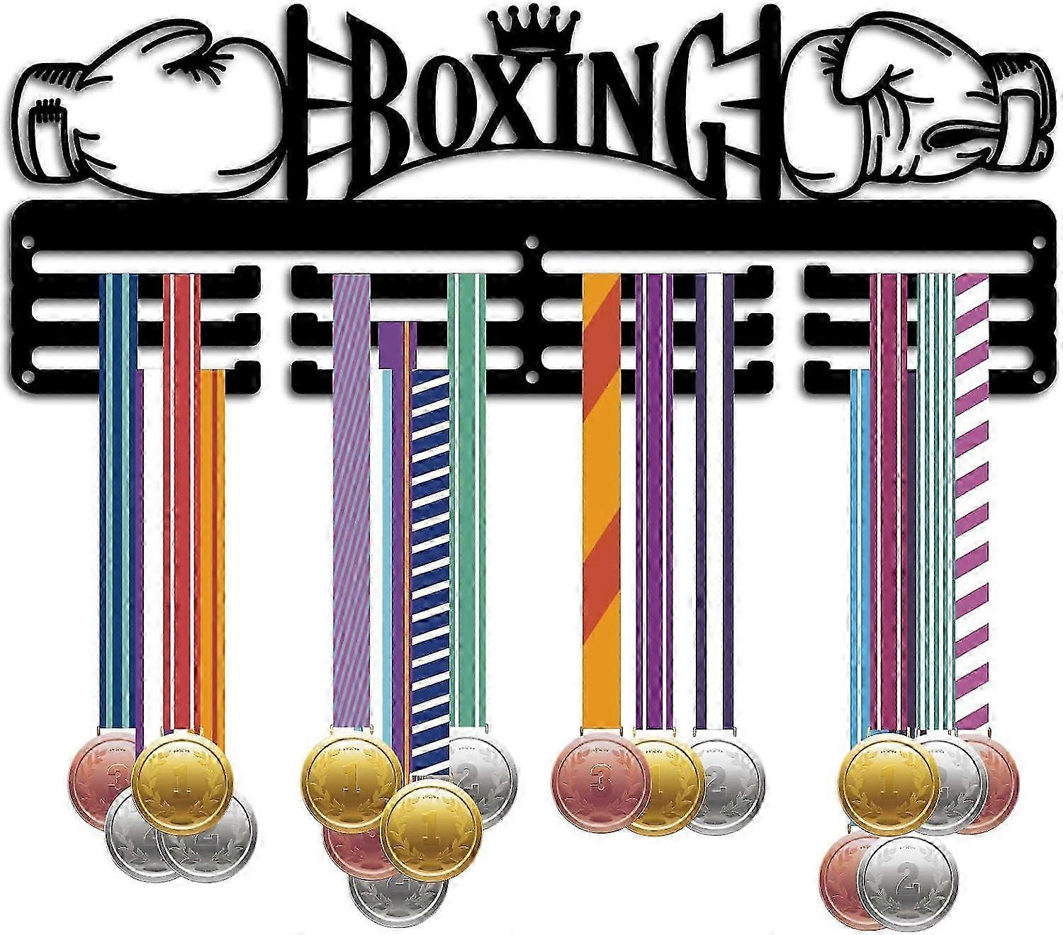 Boxing Medal Holder Display - Wall Mount Hanger for 60 Medals with Ribbons - Black Sports Medal Organizer Rack & Shelf