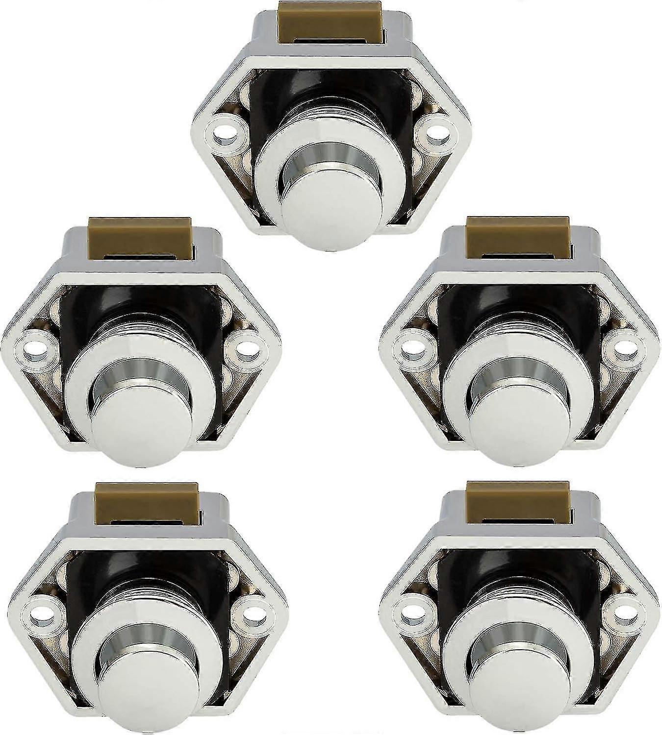 Button-style Keyless Cabinet Door Latch Lock, 5-Piece Chrome-Plated Set, Metal and ABS Material, Keyless and Easy to Operate