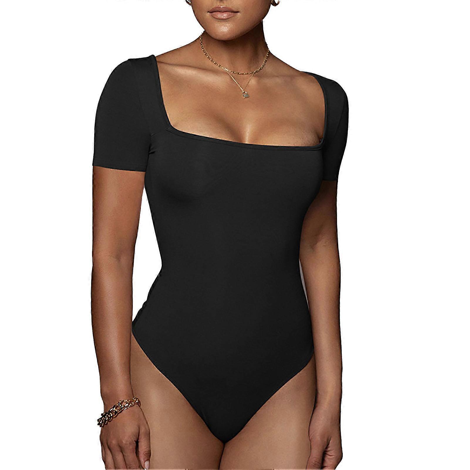Bodysuit Pure Color Slim Fit Short Sleeve Fashionable Elegant Stylish Women Bodysuit for Dating Black XL