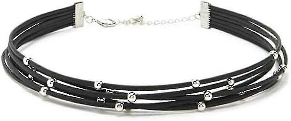 Bohemia Layered Choker Necklace Black Leather Choker With Silver Beads Multilayer Collar Necklace For Women And Girls
