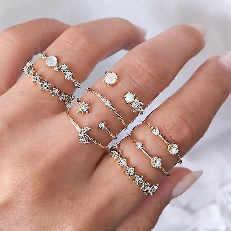 Bohemian Gold Color Chain Rings Set For Women Fashion Boho Coin Snake Moon Rings Party 2023 Trend Jewelry Gift