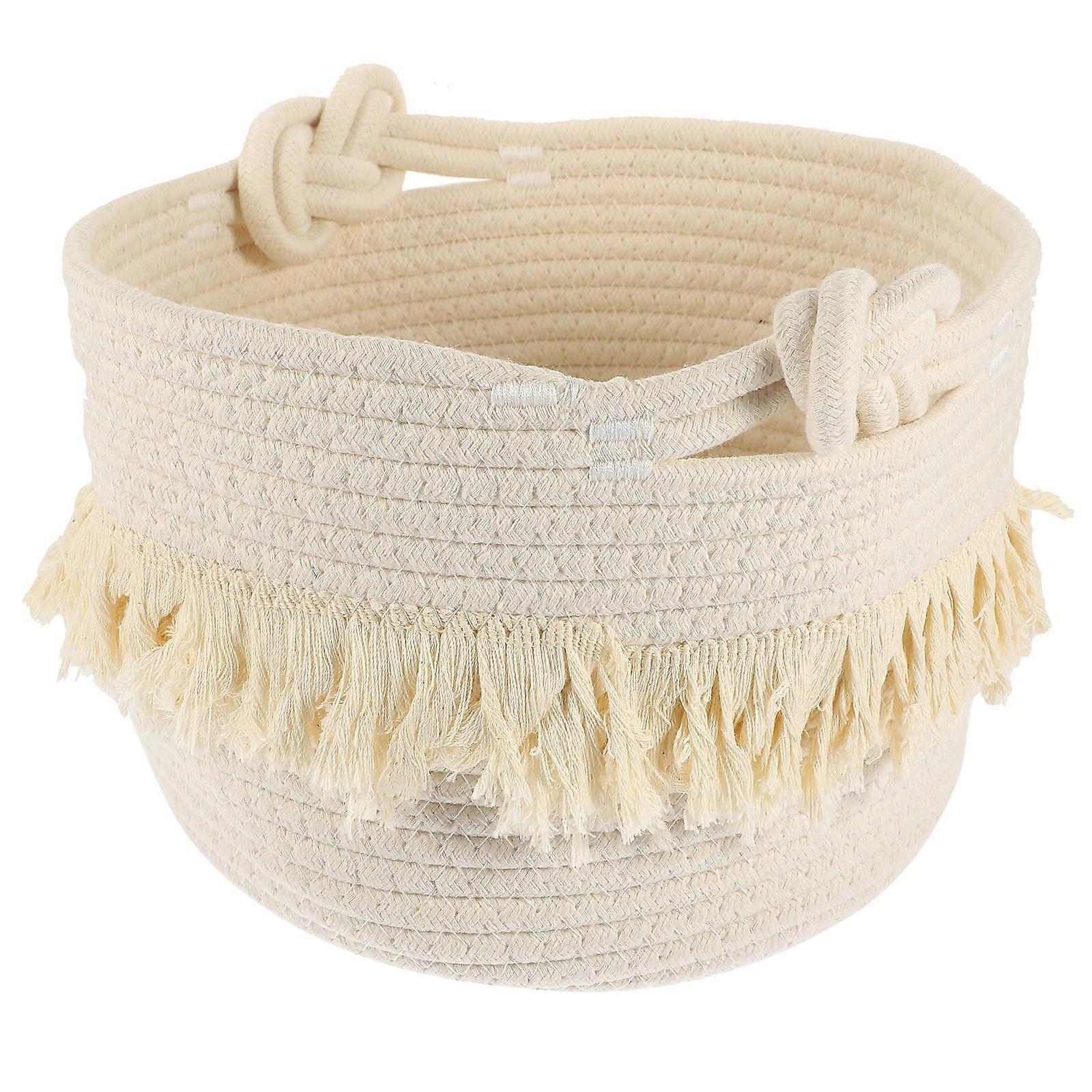 Bohemian Style Cotton Rope Storage Basket for Home Organization White Lightweight and 6.5 x 9.5 x 8 inches