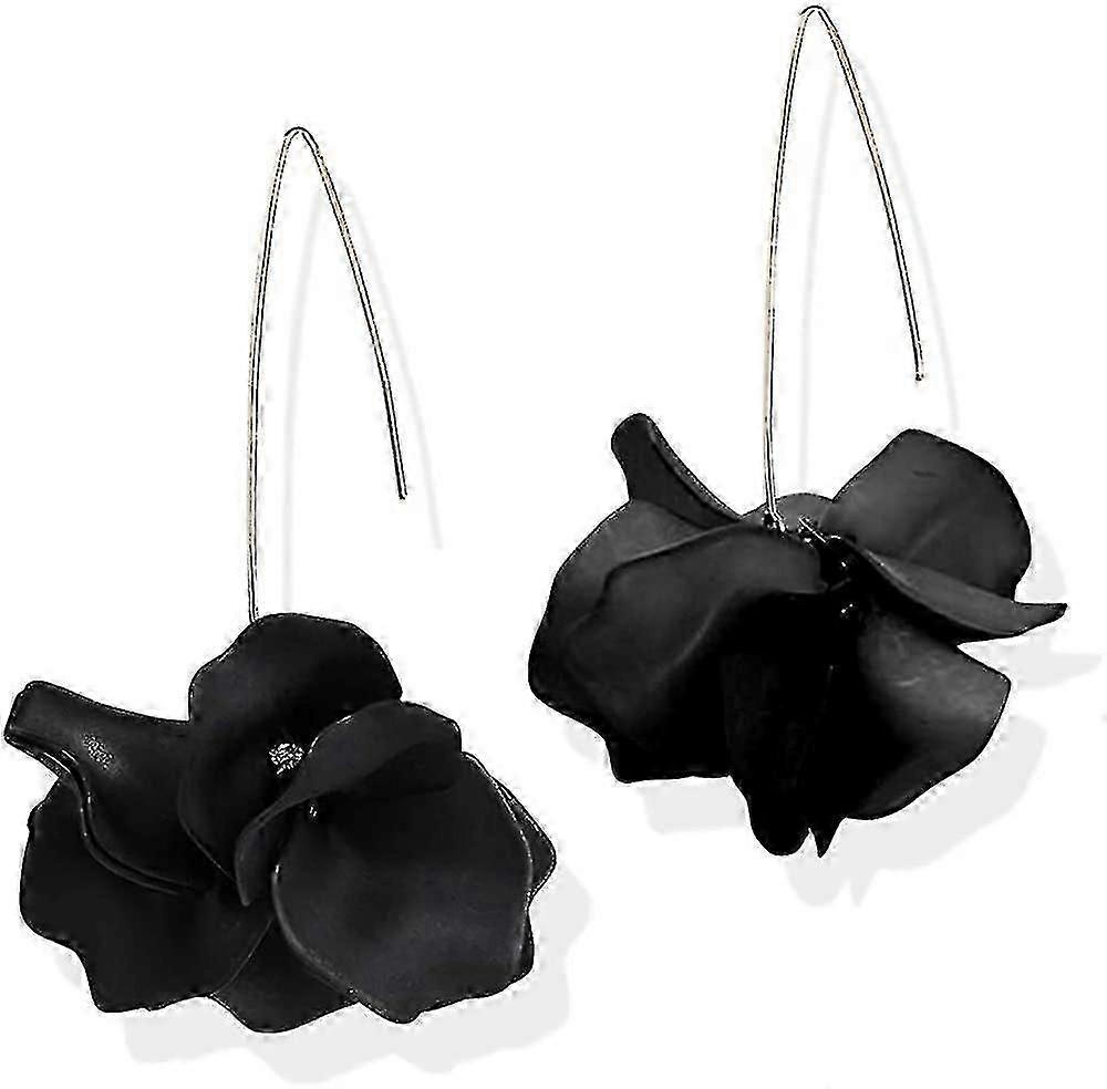 Boho Style Rose Petal Dangling Resin Earrings - Long Drop Acrylic Flower Earrings with Black Finish