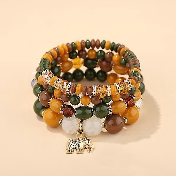 1 Bohemian beaded bracelet, pearl necklace stretch bracelet, elephant pendant crystal bracelet (Style 4)